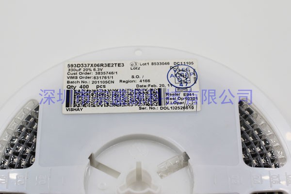 產(chǎn)品名稱(chēng):VISHAY鉭電容 7343 6.3V 330UF 593D337X06R3E2TE3