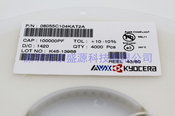 產品名稱:AVX陶瓷電容 0805 50V 0.1UF 08055C104KAT2A
