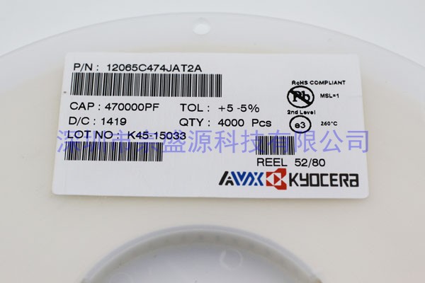 產(chǎn)品名稱:AVX陶瓷電容 1206 50V 0.47UF 12065C474JAT2A