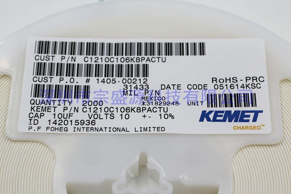 產品名稱:KEMET陶瓷電容 1210 10V 10UF C1210C106K8PACTU