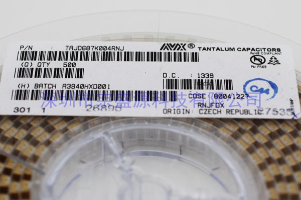 AVX鉭電容,AVX就是一家從事無源電子元器件和互連接產品的設計、開發、生產和銷售的公司,鉭電容是由稀有金屬鉭加工而成,先把鉭磨成微細粉,再與其它的介質一起經燒結而成。目前的工藝有干粉成型法和濕粉成型法兩種。鉭電容由于金屬鉭的固有本性,具有穩定好、不隨環境的變化而改變、能做到容值很大等特點,在某些方面具有陶瓷電容不可比較的一些特性,因此在很多無法使用陶瓷電容的電路上鉭電容被廣泛采用。其中AVX公司生產的鉭電容的產量相當可觀。