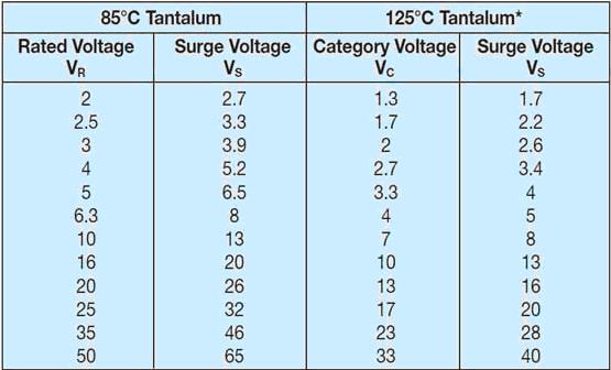 這是在一個電容器上可以連續施加的最高電壓,在+85°C 時它等于額定電壓,在125 °C時它是2/3VR,超過這個溫度會有一個線性的降額。