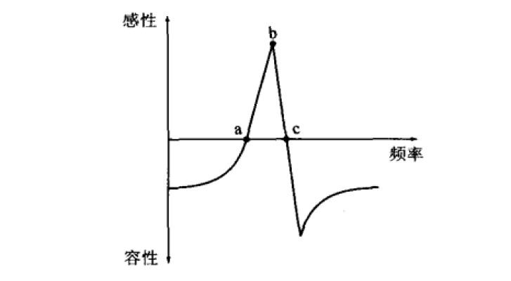如果在電氣方面觀察晶體振子,當(dāng)頻率比諧振點(diǎn)低很多、或者是高很多時(shí),晶體振子把晶體當(dāng)做電介質(zhì),只能在電容器中看到。在諧振點(diǎn)附近的頻率中,進(jìn)行特異的動(dòng)作。隨著頻率的增加,電容器(容性)從a點(diǎn)附近開(kāi)始進(jìn)行線圈(感性)動(dòng)作,在b點(diǎn)達(dá)到峰值。以后馬上失去感性,在高于c點(diǎn)的頻率中,再次恢復(fù)到作為電容器的性質(zhì)。